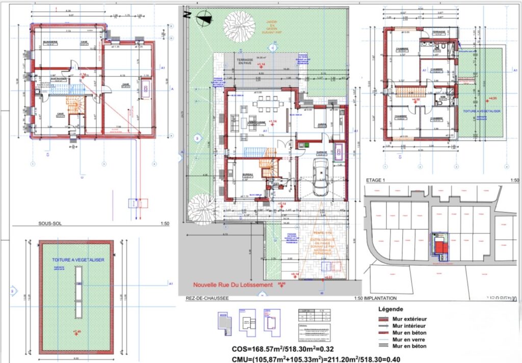 Cette maison individuelle moderne dispose de 4 chambres, 4 salles de bains, 1 WC séparé, d’une cuisine ouverte avec salon et salle à manger, d’une terrasse, d’un jardin et d’un garage.