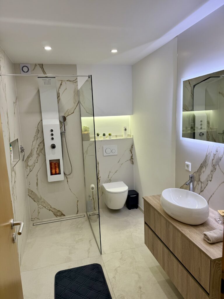 - Salle de douche moderne avec douche italienne et WC, rénovée en 2025