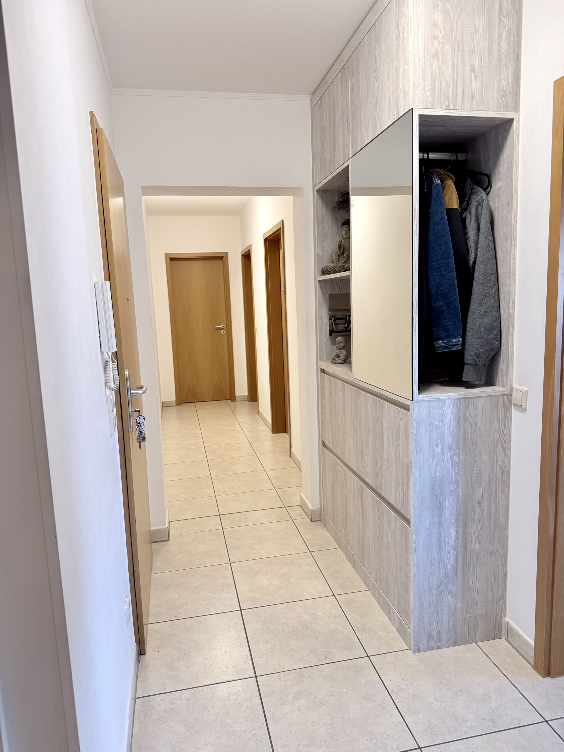 - Spacieux hall d entrée comprenant un coin rangement et une armoire à chaussures réalisée sur mesure en 2024