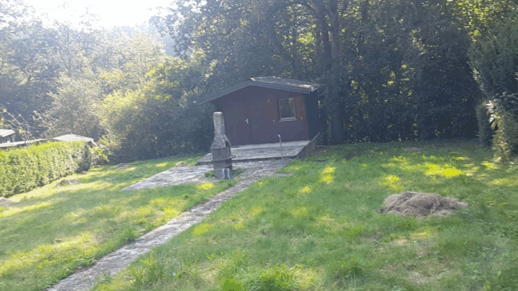 Terrain de loisirs de 490 m² avec un bâtiment de 12 m² + sous-sol en béton. Endroit calme et verdoyant.