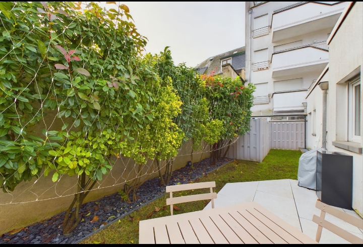 Le bien dispose d’une terrasse de 9 m² et d’un jardin privatif de 27 m², offrant un cadre de vie agréable et rare en centre-ville. Accès à la buanderie commune complètent l’ensemble.