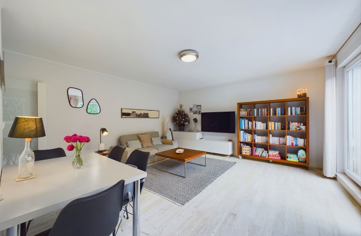 D’une superficie de 65 m², l’appartement se compose d’un hall d’entrée, d’une cuisine entièrement équipée ouverte sur le living et la salle à manger, d’une grande chambre à coucher de 17 m², d’une salle de bain ainsi que d’un WC séparé.