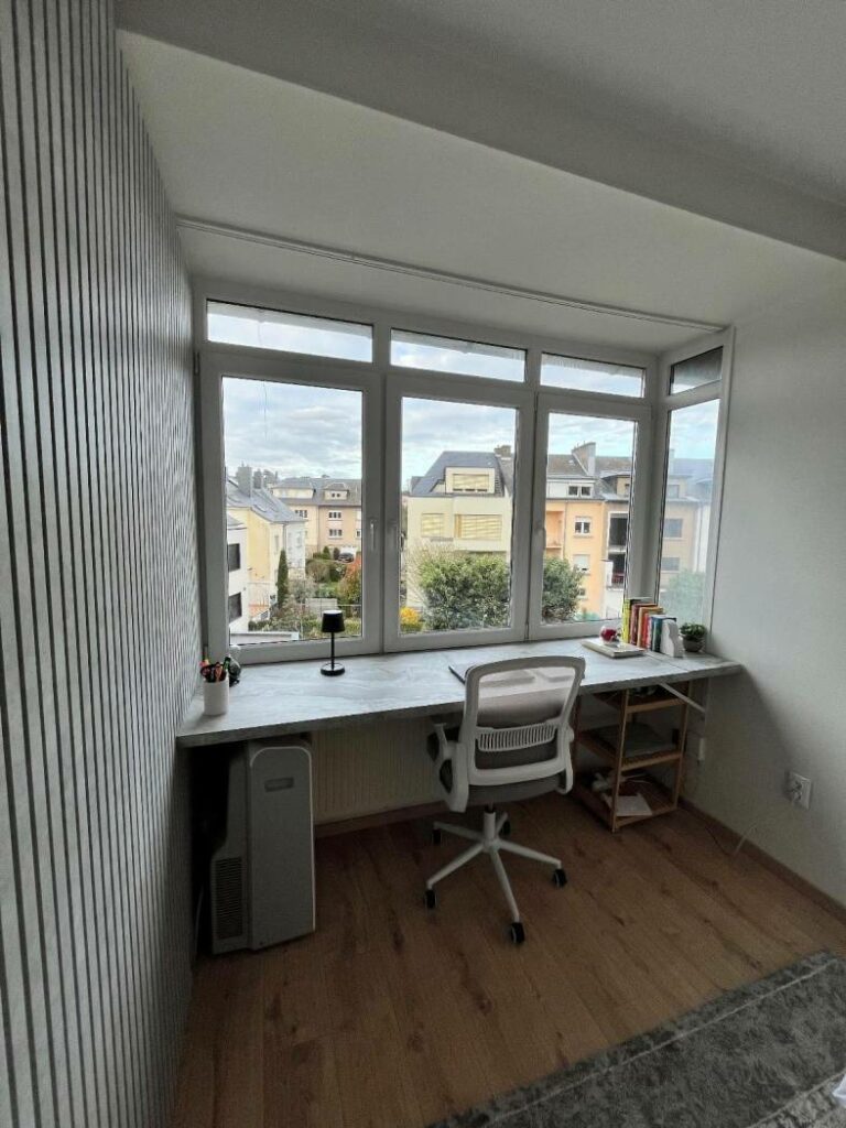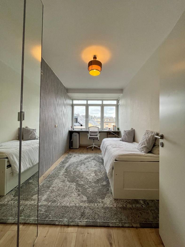 • Two bright bedrooms (15 sqm and 12 sqm), one featuring a large custom-built desk